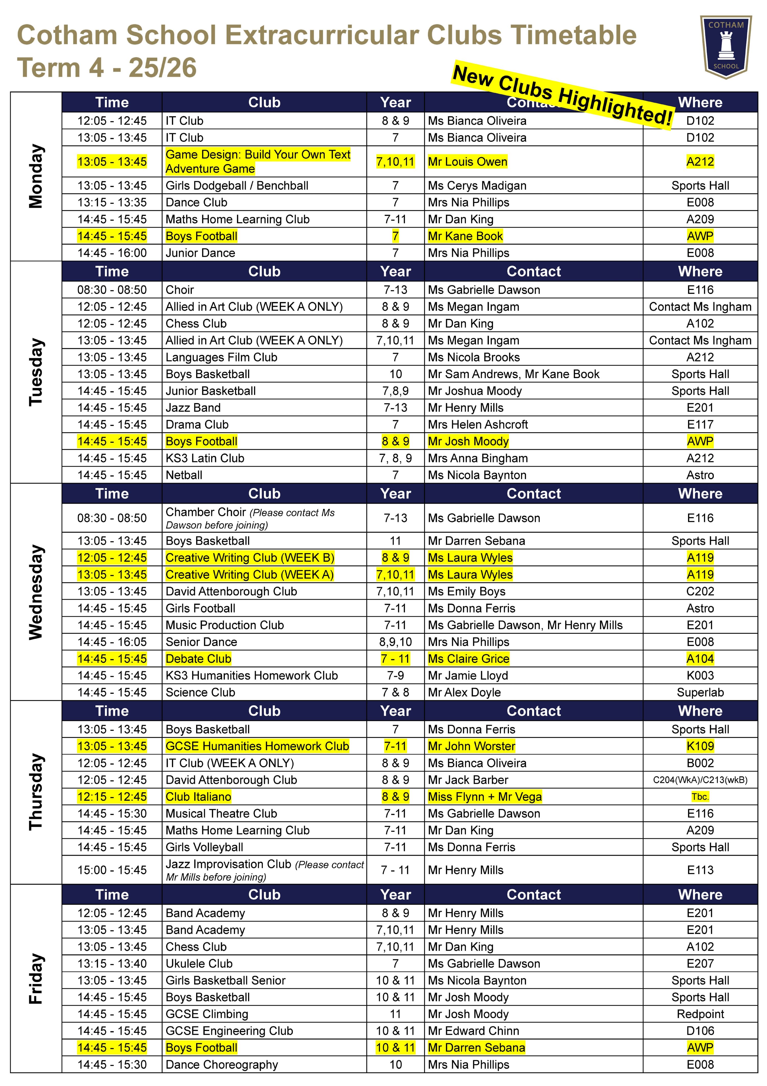 Our aim is to offer our students a quality of experience that will enrich their lives and encourage every student to take advantage of the wider life of the school and to participate in at least one club. A wide range of subject and interest-based extra-curricular activities are available to all students in Years 7-13. These give our students the opportunity to play a full and active role in the wider life of the school.